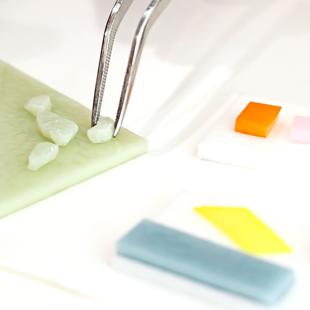 Katie Kismet designs are handcrafted using a variety of glass types and techniques and kiln-fired to over 1500 degrees. The shape of the glass, the way it's assembled, and how it's fired all affect the outcome, and there are countless ways to play with those variables. Most designs require multiple firings with refining between each. From the first cut to the finishing touches, many Katie Kismet styles take upwards of 20 hours to create.